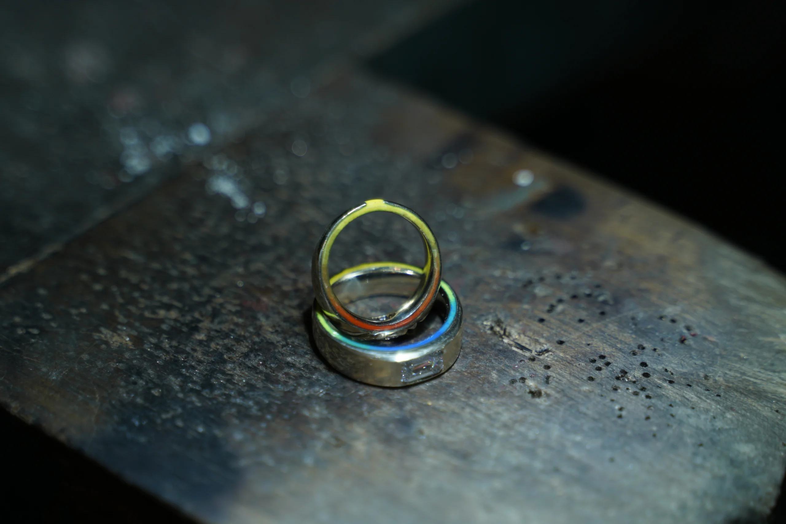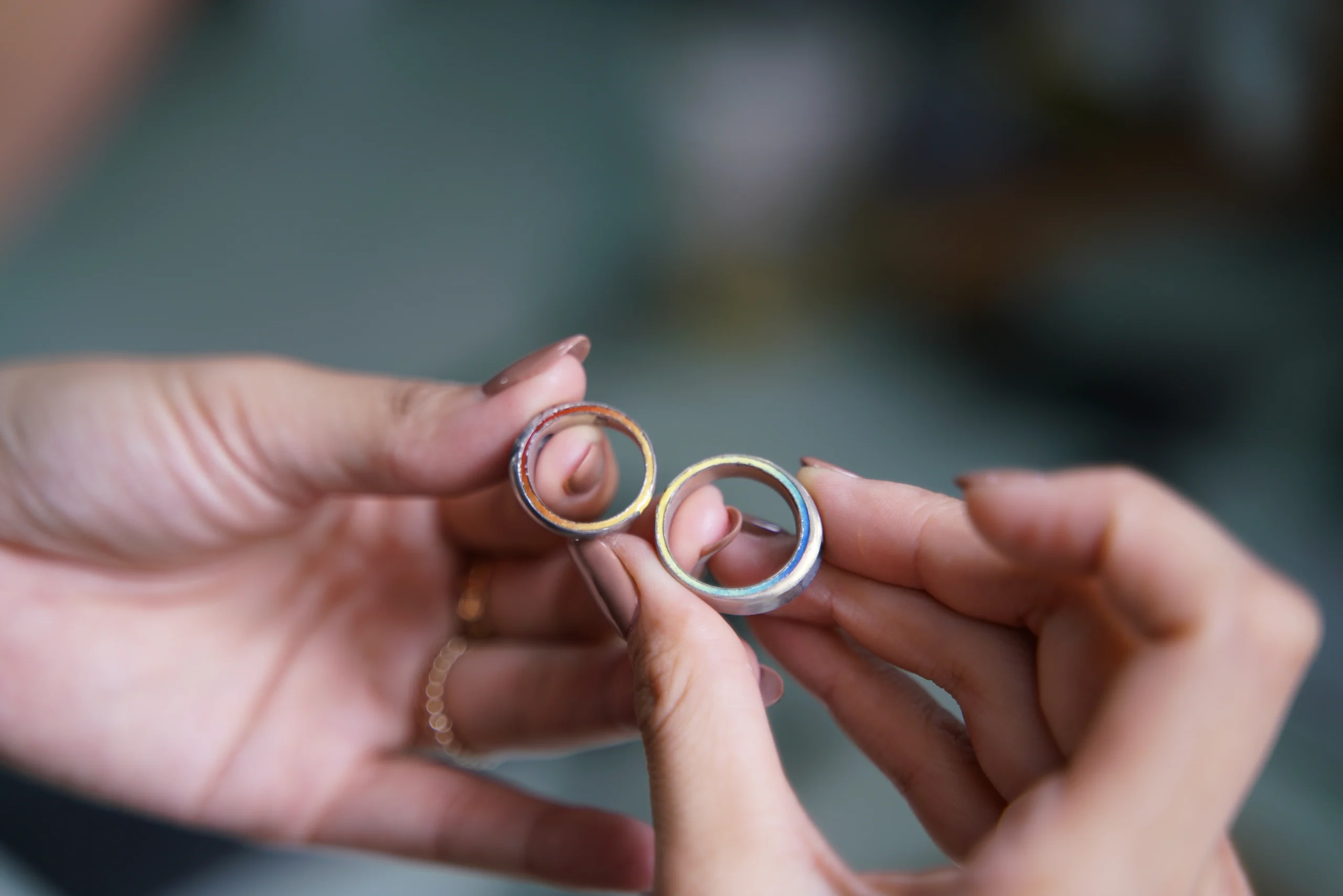 Bên trên là Đôi nhẫn được Thiết kế và Sản xuất bởi EUNOIA – Một sản phẩm Pháp Lam được làm bằng Kỹ thuật tráng men loang màu, đã khiến Đôi nhẫn trở thành một Thiết kế đặc biệt trên hành trình theo đuổi và gìn giữ các giá trị văn hóa cốt lõi của thương hiệu. Một sản phẩm nghệ thuật thủ công không chỉ kể câu chuyện của riêng bạn, mà còn là câu chuyện của văn hóa, của dân tộc Việt Nam.