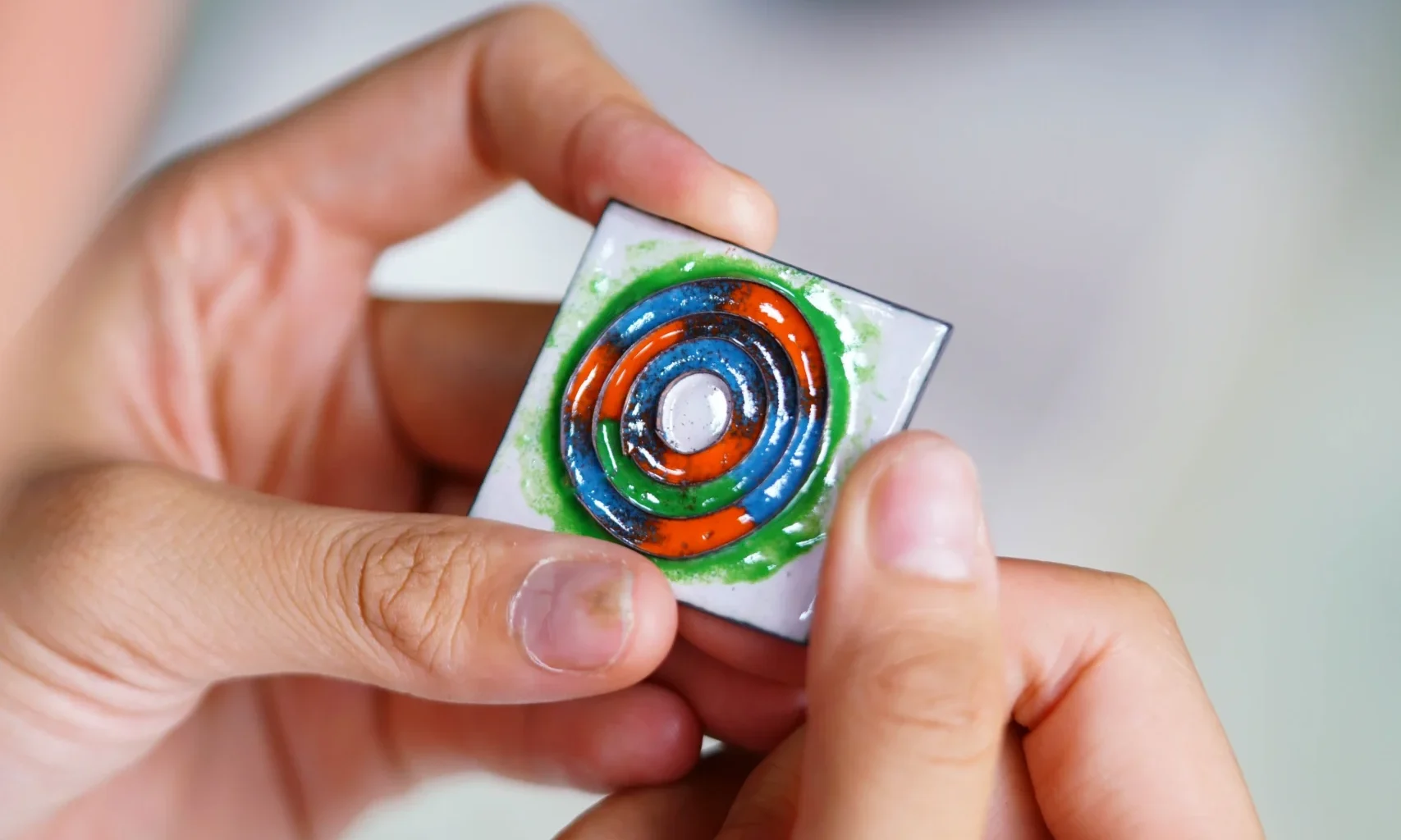 Năm 2025, để đáp ứng được nhu cầu từ một vị khách hàng khó tính, tụi mình lại một lần nữa, bắt đầu tìm hiểu và nghiên cứu chất liệu tráng men trên trang sức. Lúc này, tụi mình từng bước đi vào hành trình tiếp cận với Pháp lam Huế – một di sản có giá trị đặc biệt, không hề thua kém bất kỳ di sản nào mà triều Nguyễn (1802 – 1945) để lại cho đất Cố đô.